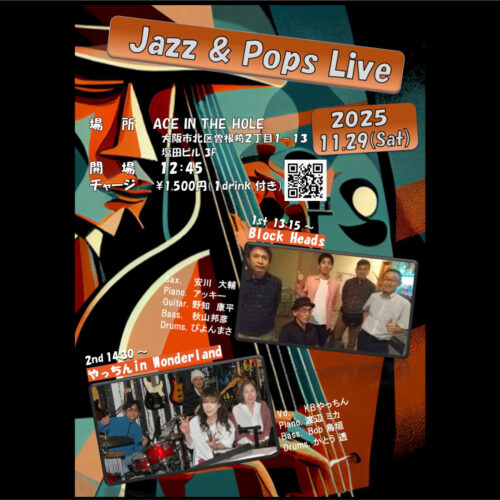 29 Sat 2025 Jazz & Pops Live music live Jazz & Pops Live 出演: Block Heads, やっちん In Wonderland… MORE DETAIL