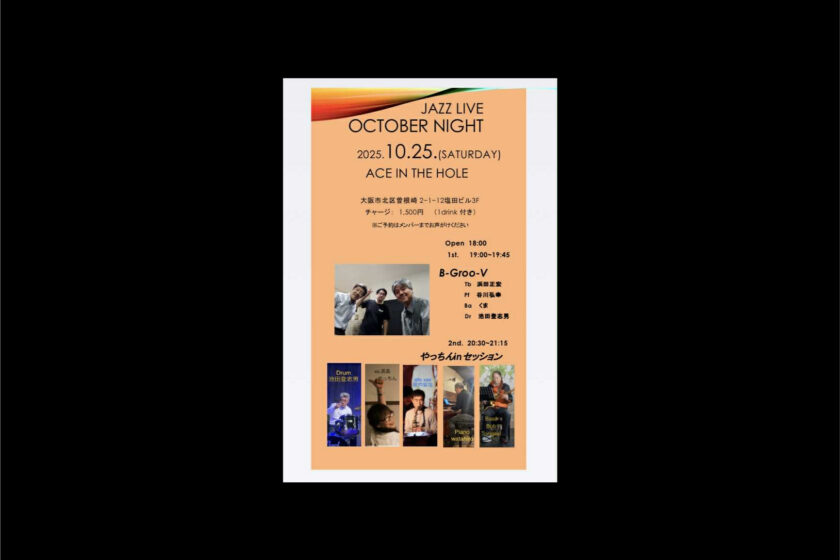 Drum 池田登志男 vo 高島やっちん alto sax 堀内智哉 Piano Wtahiro Bass Bob Torigaki