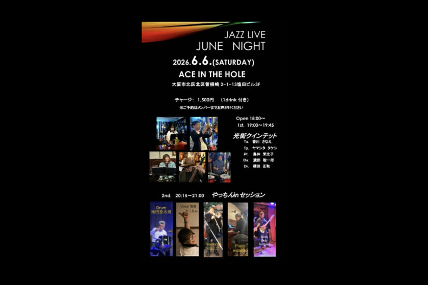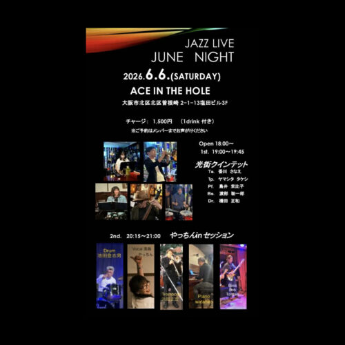 Ts. 香川さなえ Tp. ヤマシタタケシ Pf. 鳥井栄比子 Bs. 渡部聡一郎 Dr. 橋田正和